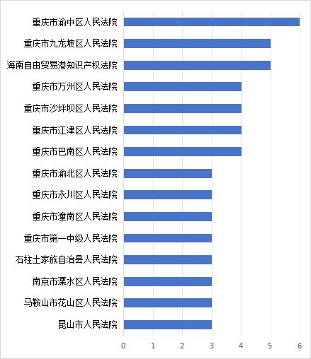 549例多元解纷案例中化解单位包含法院的有387例,总占比约70%,共涉及30个省级行政区域。其中重庆市、江苏省案例数量位居前列,均超60例,分别有66例、62例。10例至60例之间的包括山东省、河北省及安徽省等11个省级行政区域。从具体法院来看,387例化解单位共涉及316家具体法院,重庆市渝中区人民法院化解数量最多,有6例。