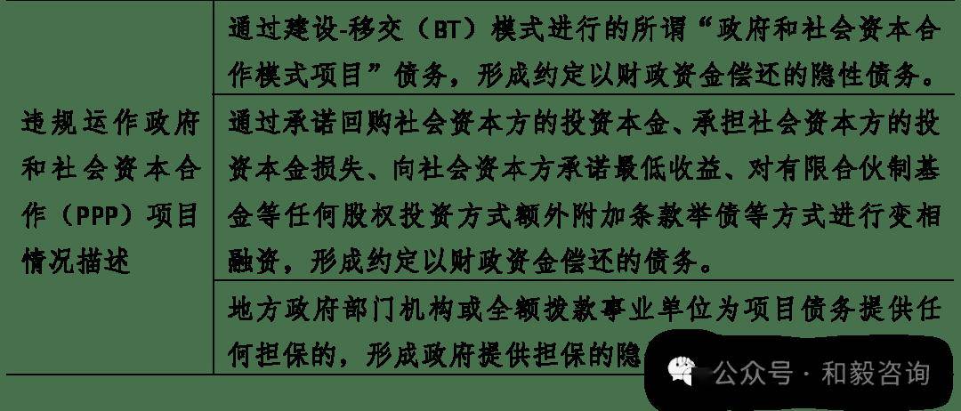 在财政部通报的案例中,有5例因违规操作形成政府中长期支出事项,进而导致新增政府隐性债务。这些案例具体细分为违规操作PPP项目和违规进行政府购买服务两种类型。