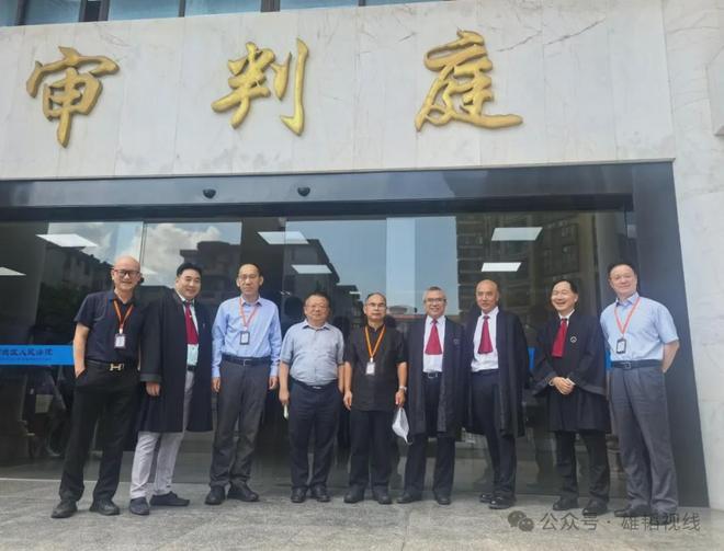 今日,部分旁听者与辩护律师们在佛山市顺德区法院审判庭前合影,展现律师正气凛然的风采。